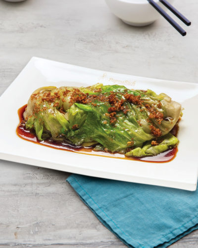 Lettuce served together with oyster sauce topped with crispy fried garlic.