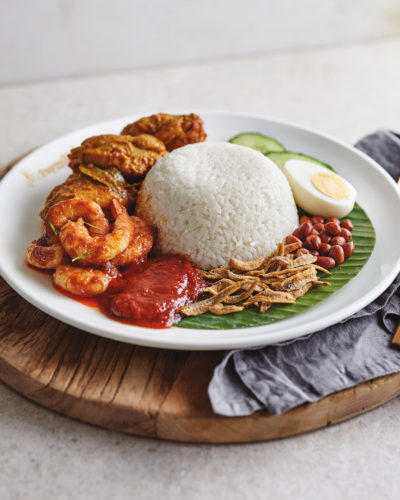 R05 – Nasi Lemak with Curry Chicken & Sambal Prawn