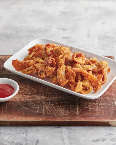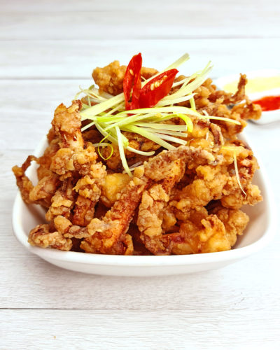 Crispy crunchy marinated squid tentacles served with mayonnaise and sweet chilli sauce