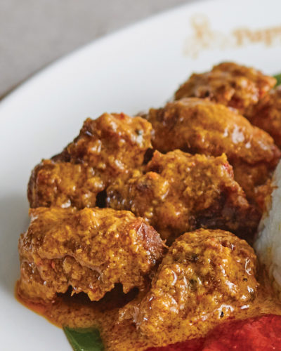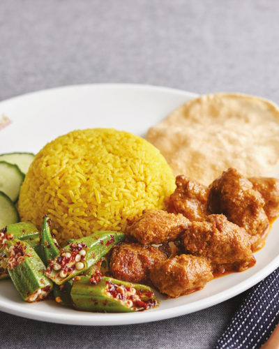 R29 – Nasi Kunyit with Beef Rendang & Sambal Eggplant