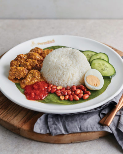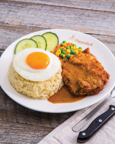 Also comes with fried anchovies, fried peanuts, hard boiled egg, cucumber slices and daily made spicy sambal.Pappa Signature Dishes, Rice